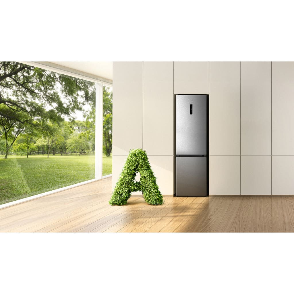 Kombinovaná chladnička s mrazničkou dole prehľadne uskladní potraviny pre celú rodinu a vďaka voľne stojacej konštrukcii ju ľahko umiestnite do akejkoľvek kuchyne. Elegantný sivý kovový povrch (kolaminovaná oceľ) zapadne do moderného interiéru, pričom telo s rozmermi 201,7 × 59,5 × 57,9 cm zostáva príjemne štíhle. Celkový objem 336 l ponúka štedrý priestor pre čerstvé aj mrazené zásoby bez kompromisov.