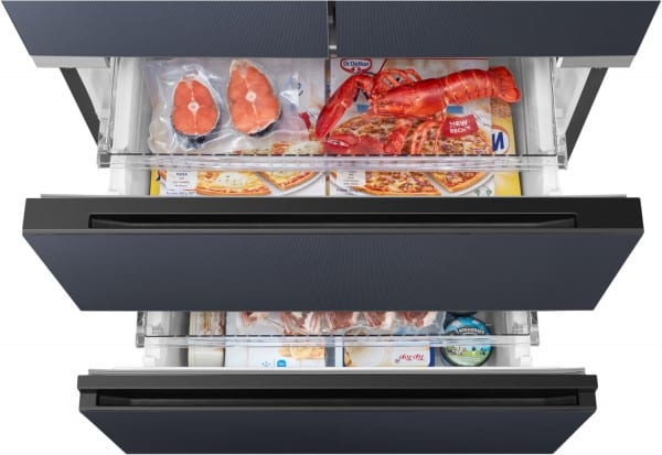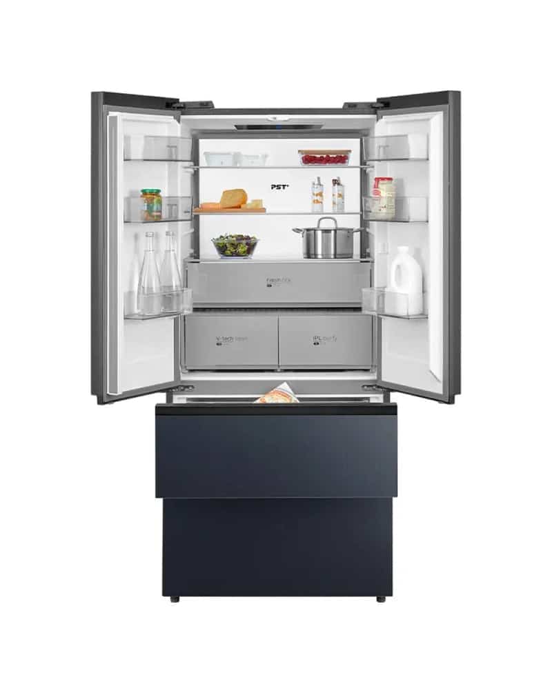French Door konštrukcia s dvomi hornými dverami a spodnými zásuvkami ponúka priestrannú 515 l kapacitu pre veľké nákupy a prehľadné uloženie potravín. Vnútro je navrhnuté pre prehľadnú organizáciu s odolnými sklenenými policami a presvetľuje ho LED osvetlenie, zatiaľ čo cirkulácia Multi Air Flow udržiava stabilnú teplotu v celom priestore.