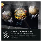 Silný motor a viac stupňov výkonu zabezpečujú efektívne odsávanie pri akomkoľvek varení: odťah ponúka 260/445/ 760 m³/h, recirkulácia 250/440/ 725 m³/h. Vďaka 3 rýchlostiam + 2 intenzívnym a technológii ExtractionTech Pro máte istotu rýchleho odstránenia pár aj pri náročnom varení.