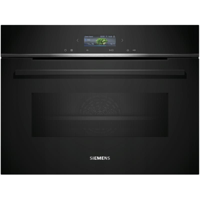 Siemens CM724G1B1 je vstavaná rúra s mikrovlnkou s šírkou 45 cm, ktorá je vybavená TFT-Full-Touch displejom, HomeConnect a humidClean. Tento produkt je ideálny pre moderné kuchyne, ktoré vyžadujú vysokú funkčnosť a štýlový dizajn.