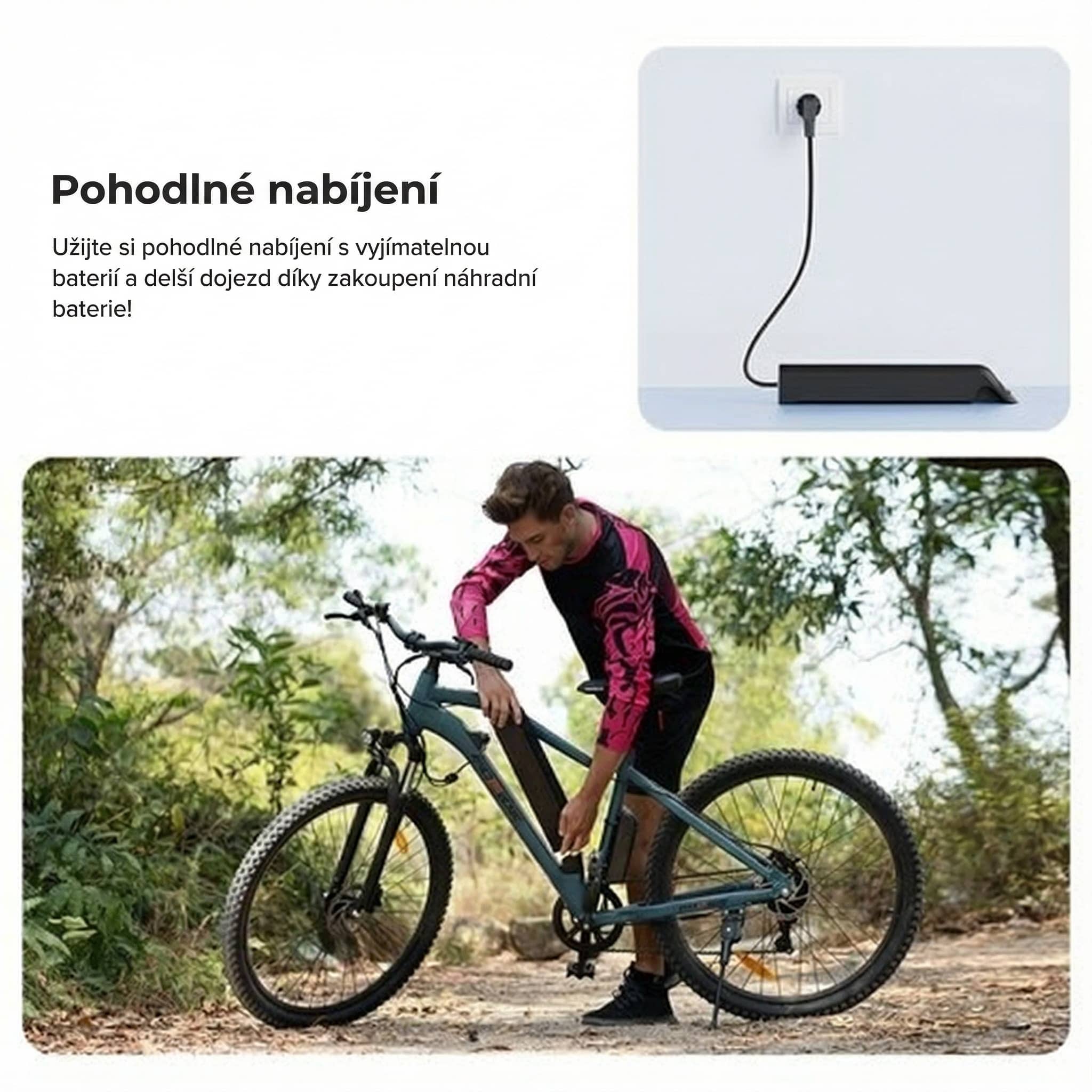 • Batéria 12 Ah (~576 Wh) s dojazdom až 120 km a možnosťou druhej batérie.