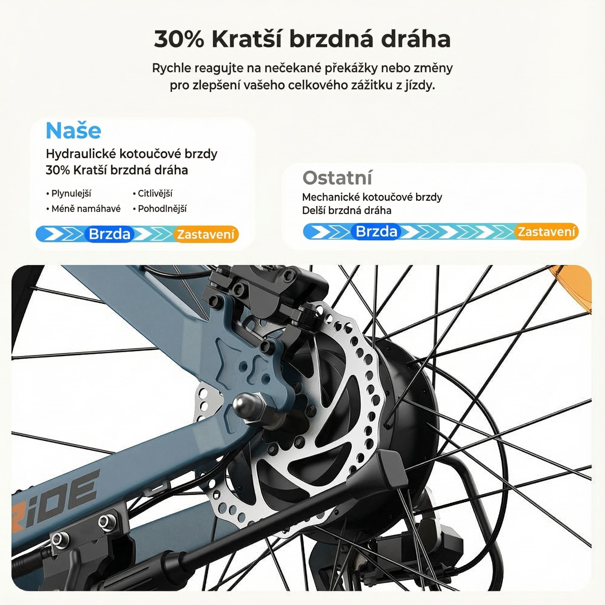 • Hydraulické kotúčové brzdy s e‑brzdou pre istotu a krátku brzdnú dráhu.