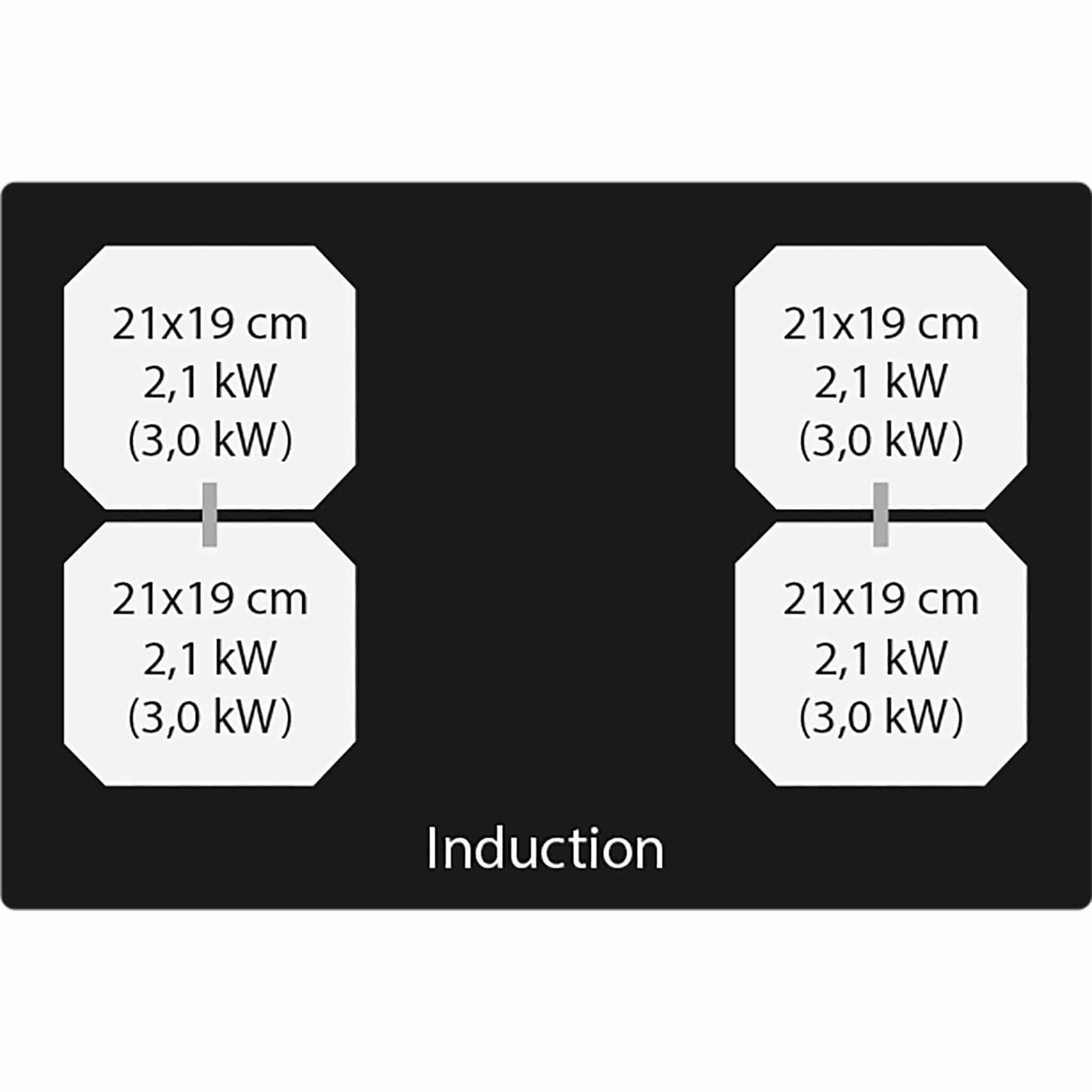 – Počet zón: 4 (2,1 – 3 kW) – 210×190 mm