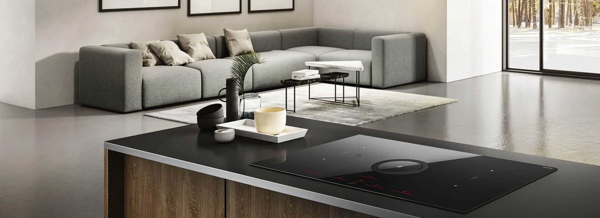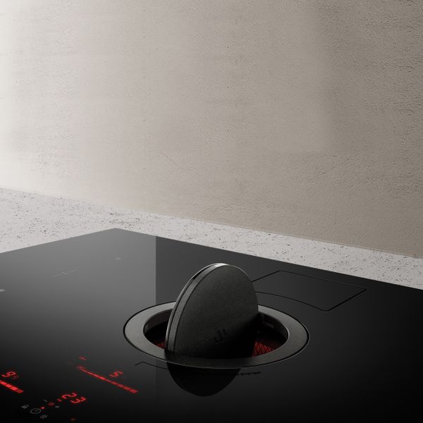 Dizajn a funkčnosť: Varná doska s čistými líniami a povrchom z čierneho skla je nielen praktickým, ale aj estetickým doplnkom každej kuchyne. Displej varnej dosky je v režime pohotovosti úplne neviditeľný, čo zvyšuje estetickú hodnotu produktu. Oblast odsávania je skrytá pod skleneným a liatinovým kruhom, ktorý je charakteristickým prvkom dizajnu, no nekontrastuje s ostatnými prvkami kuchyne.