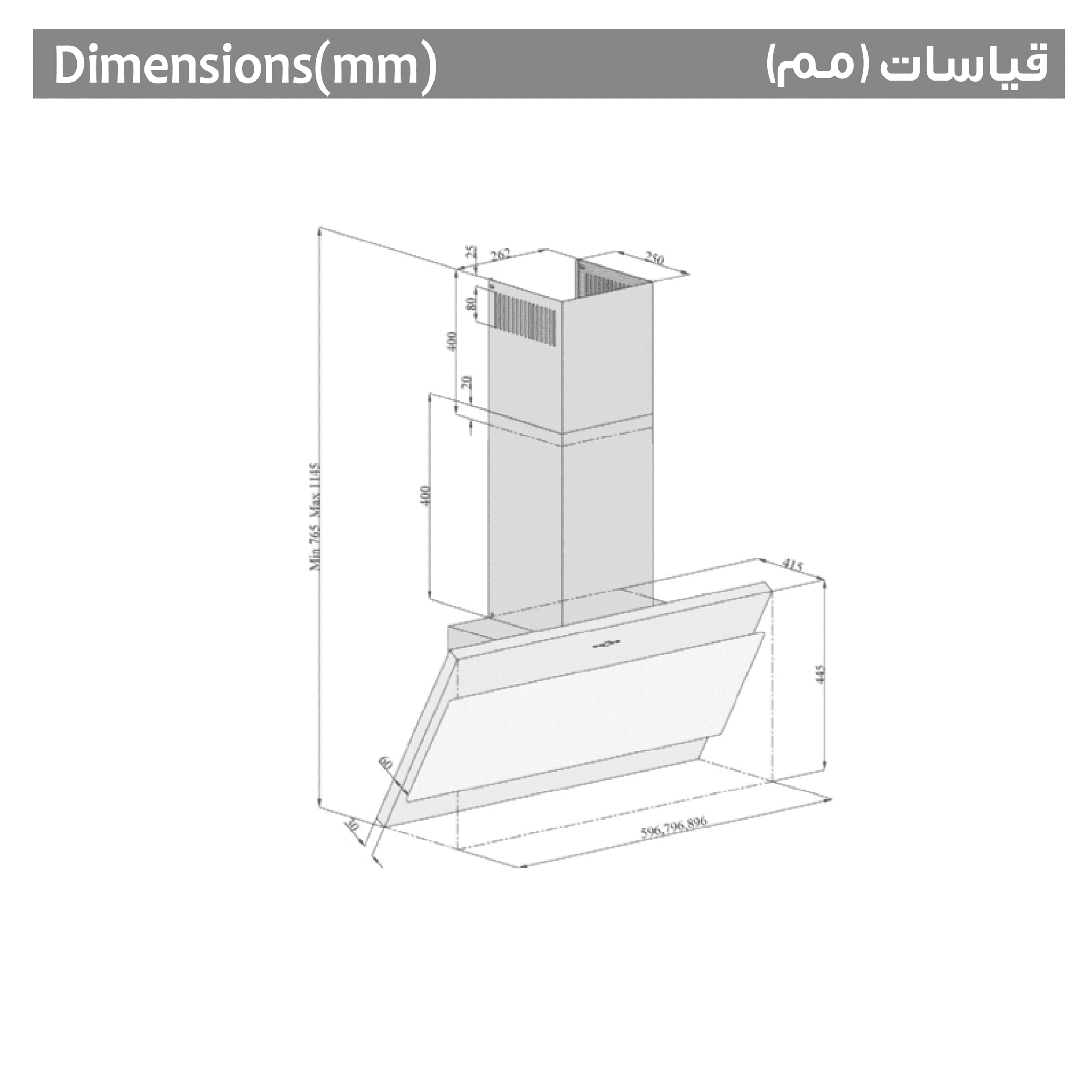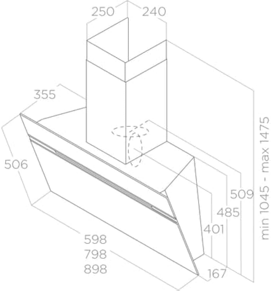 Pre presné plánovanie montáže oceníte prehľadné technické podklady k modelu Stripe. Šírka 90 cm zapadne do štandardných riešení, pričom 2-bodové odsávanie a voľba odťahu alebo recirkulácie dávajú flexibilitu aj v náročnejších dispozíciách. Pri použití redukcií majte na pamäti, že môžu ovplyvniť skutočný výkon odsávania.