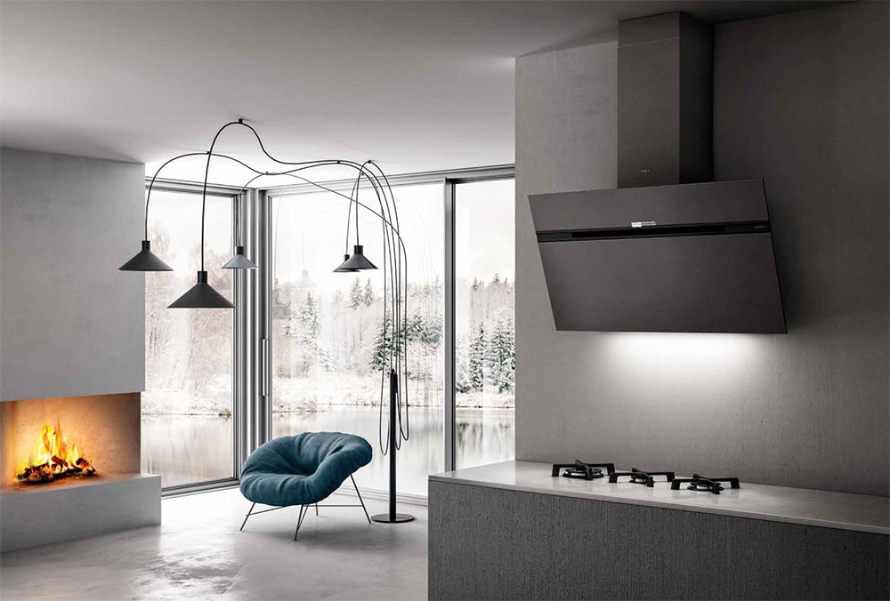 Štýlový šikmý panel z bieleho skla šetrí priestor nad varnou doskou a umožňuje voľný pohyb pri varení. Lineárny dizajn ladí s väčšinou kuchynských línií a dá sa presne zarovnať so skrinkami. Konštrukcia Stripe využíva 2-bodové odsávanie – spodné a cez prednú štrbinu – pre efektívne zachytenie pár hneď pri zdroji. Model je určený na montáž na stenu a v šírke 90 cm prirodzene pokryje bežné varné plochy.