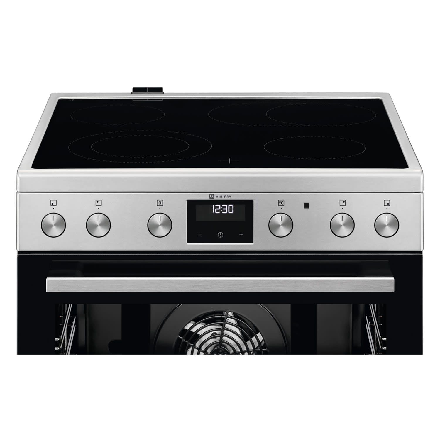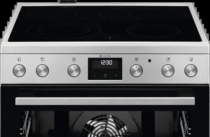 Sklokeramická doska ponúka štyri varné zóny vrátane dvojokruhovej HiLight vpredu vľavo a oválnej dvojokruhovej vzadu vpravo – ideálne pre väčšie hrnce či panvice. Rýchly a presný ohrev znižuje čakacie časy, otočné gombíky umožňujú intuitívne nastavenie a prehľadný LED displej udrží varenie pod kontrolou.