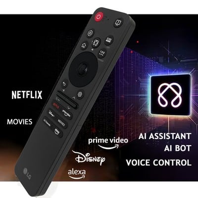 Vďaka webOS 25 máte rýchly prístup k streamovacím aplikáciám, profilom a odporúčaniam. V balení nájdete diaľkový ovládač, pričom k televízoru je kompatibilný AI Magic Remote (MR25GA) s hlasovým ovládaním pre ešte pohodlnejšiu navigáciu. Bluetooth uľahčí pripojenie slúchadiel či gamepadov a Wi‑Fi zabezpečí stabilné pripojenie k sieti.