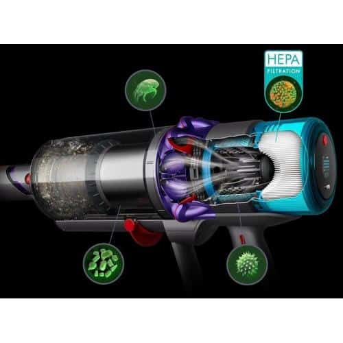 Srdcom tohto vysávača je najvýkonnejší digitálne riadený motor Dyson, ktorý dosahuje rýchlosť až 130 000 otáčok za minútu. Táto neuveriteľná rýchlosť vytvára najvýkonnejšie sanie, ktoré si poradí s každým typom nečistôt. Či už ide o prach, vlasy, alebo drobné úlomky, Dyson Gen5 Detect Absolute si s nimi hravo poradí.